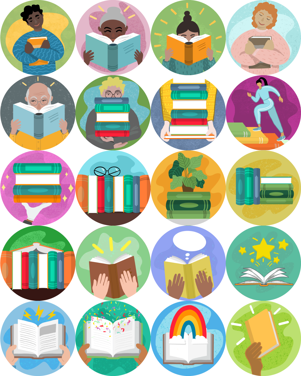 Zoobean is an app that provides reading challenges for schools, libraries, and businesses. These badges are rewards for when a book is completed. The banners below are headers for a generic reading challenge.
